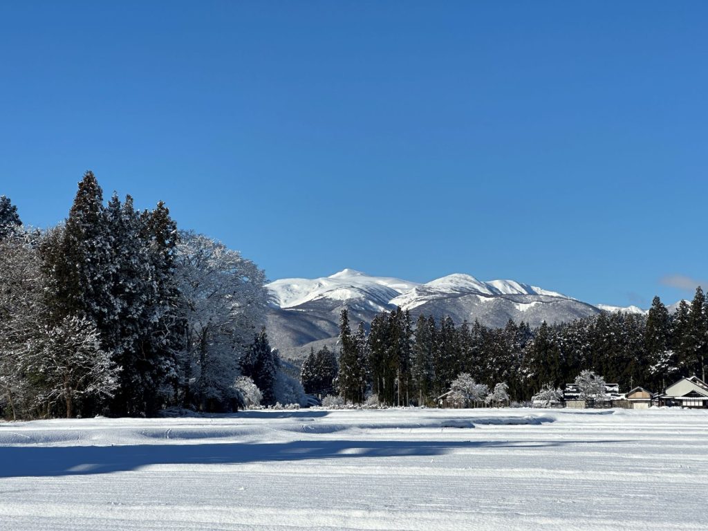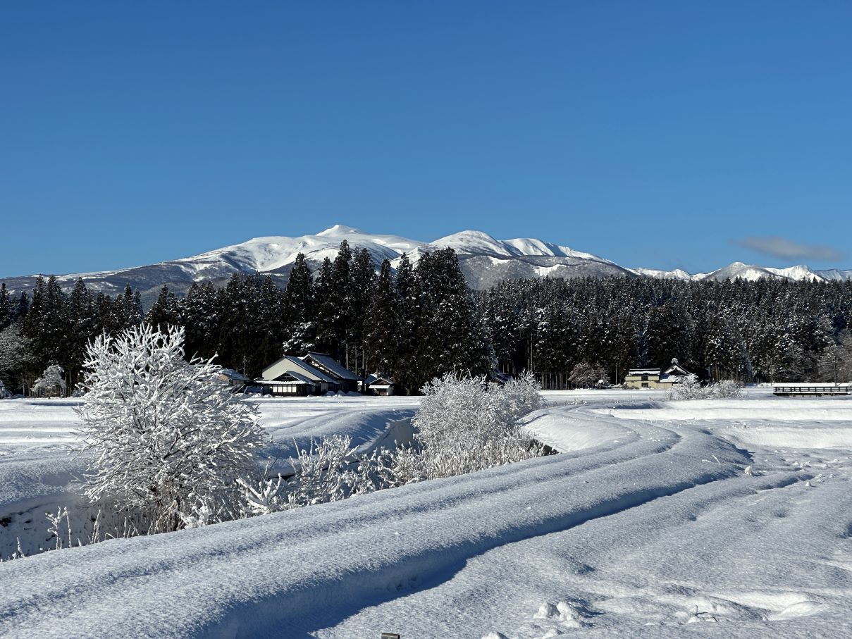 今日は雪が20センチほどつもり、久しぶりのきれいな雪景色。さらに栗駒山まで顔を出してくれました。