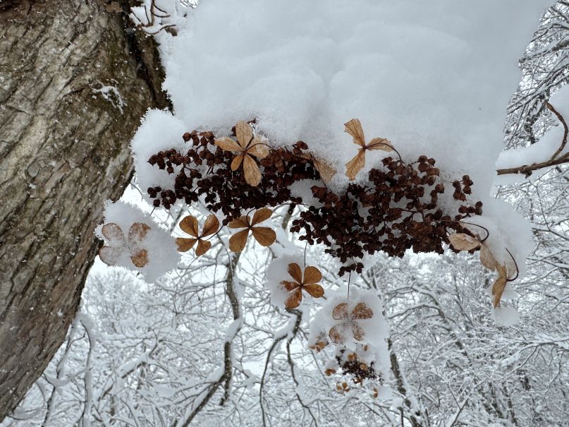 で、休憩舎まであと数百メートルまで来たところで、トレースが判然としなくなり、トレースがないと膝まで沈むし、樹林下から、上まで雪に覆われていない低木地帯に入り、歩きにくいので、退散。まあ無理に突っ込んでいたら帰りには日が沈んでいたかもしれないので、正解だろう。6.5キロ 3時間弱。