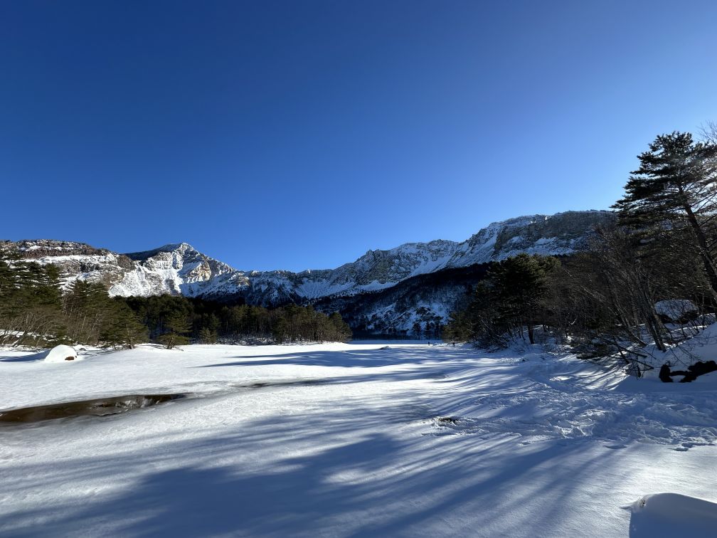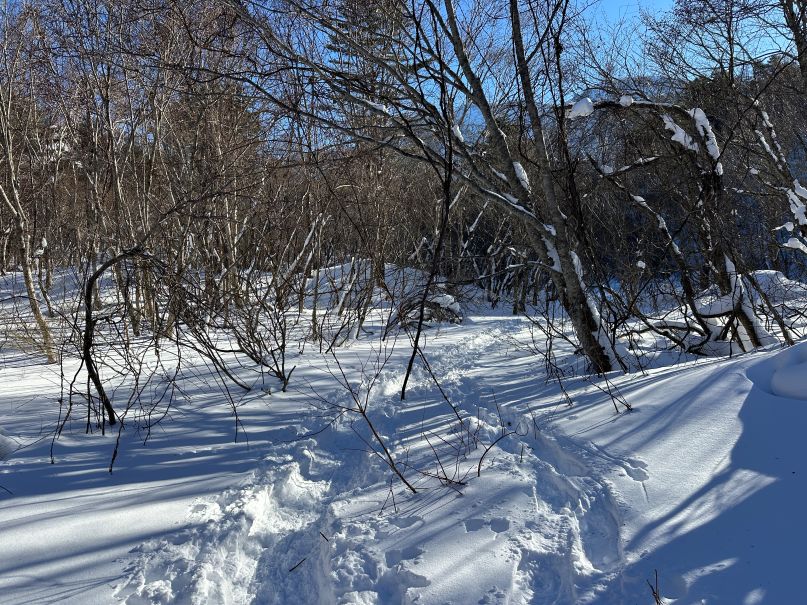 スノーシューで歩いている人も多い。で、トレースを辿って昨年何度も通った銅沼へ。
