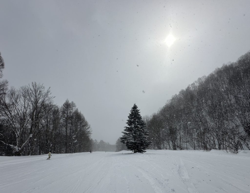 すこーしだけ天気が回復したので、カメラとテレマークスキーを抱えてスキー場に。