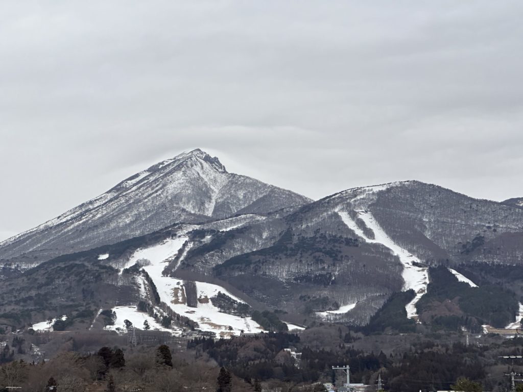 昨日から降り始めた雪で、ちょっと雪が戻ってきた磐梯山。