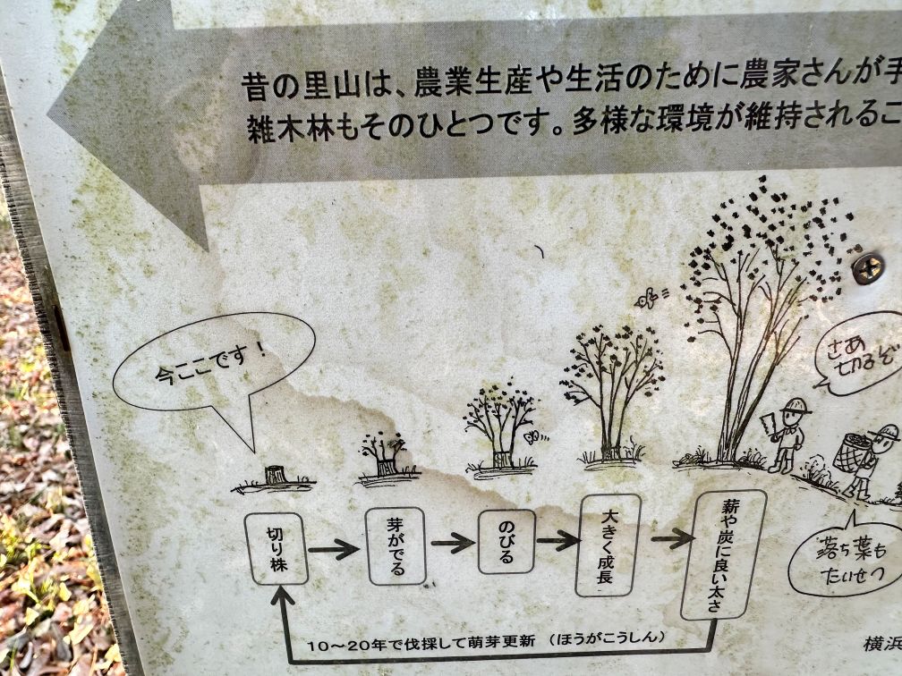 市民の森で取り組んでいるらしい萌芽更新。何年前に切ったのか書いておけばいいのにと思う。