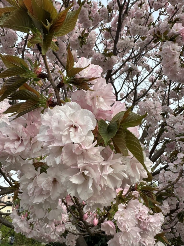 買い物にいって、近所の八重桜