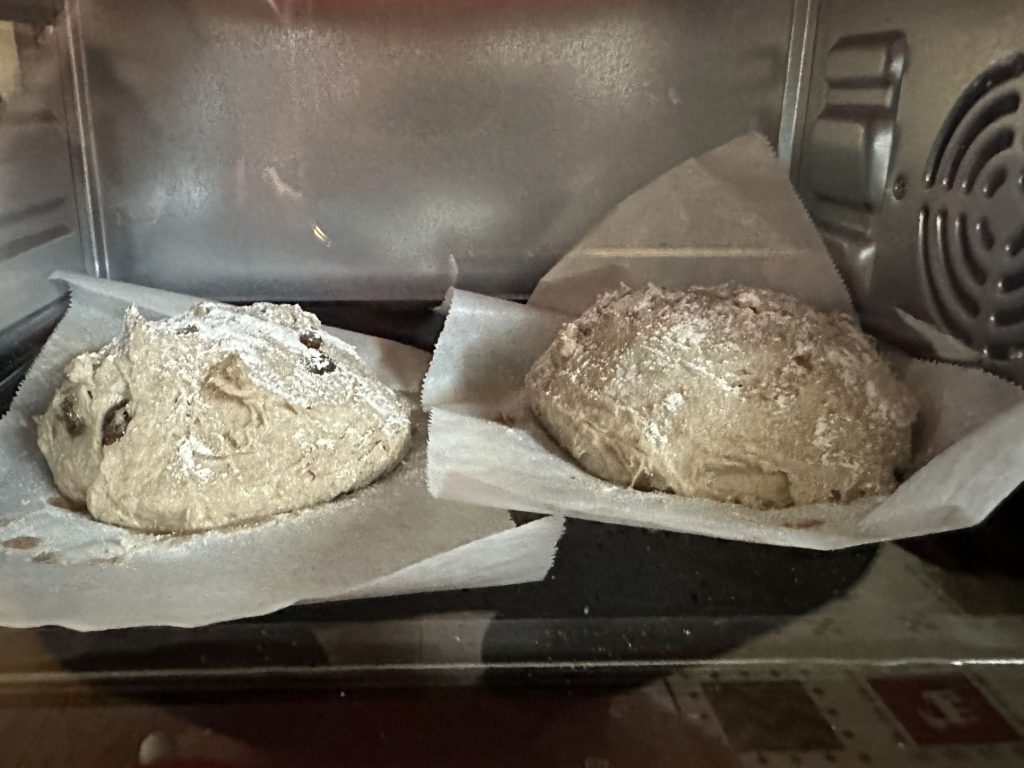 いつもイーストを入れていたのだけど、イーストがなくて、ライ麦種の発酵力だけで焼いてみた。もともとライ麦パンで膨らむってわけでもないのだが、それなりに膨らんで・・・横が割れた。