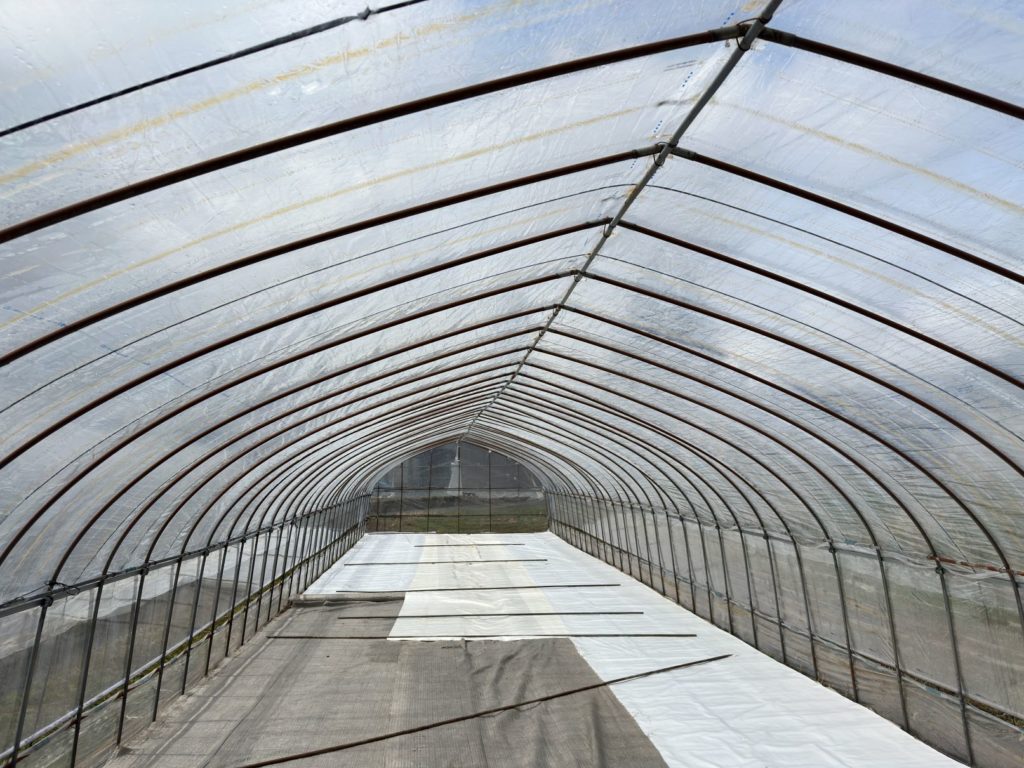 この日も作業手伝いに、山形県鮭川村の米地区へ。先日種を播いた育苗箱を、ハウスに並べました。