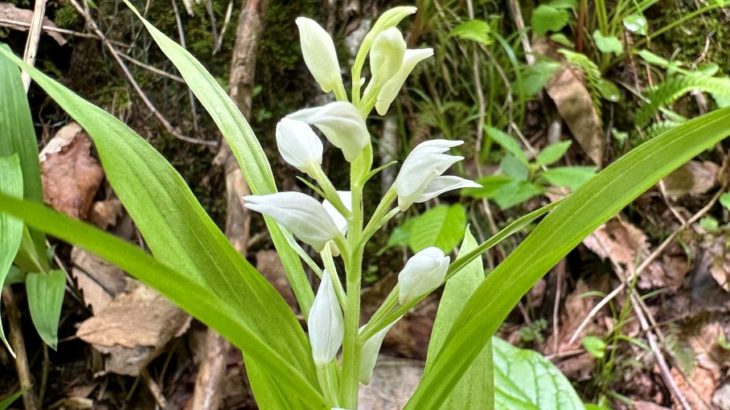 ということで、林道を歩いていて見つけたササバギンラン。見つけた時はギンランかな、それにしても大きいなと思っていたのですが、家に戻って調べると「ササバギンラン」のようです。