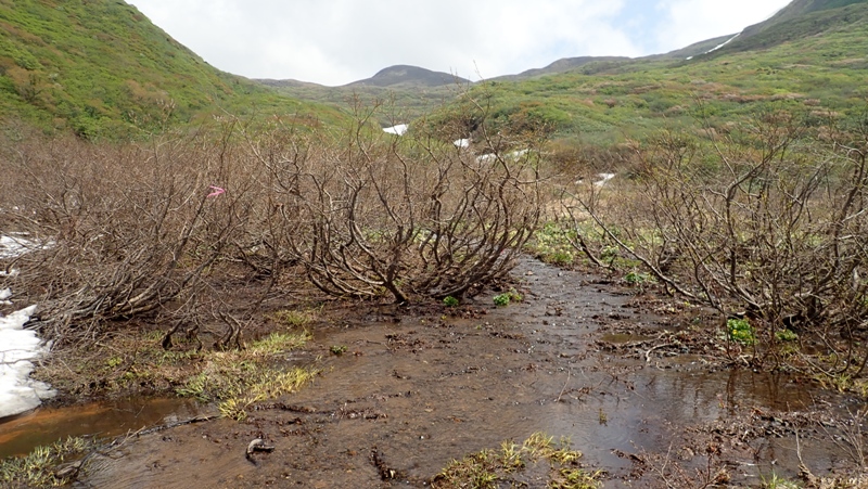 8合目道標から焼石沼までの短い距離もぬかるんでいます。