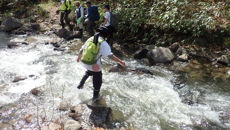 渡渉点は対岸にテープやペンキの矢印も見つけることができると思いますので、間違えないように