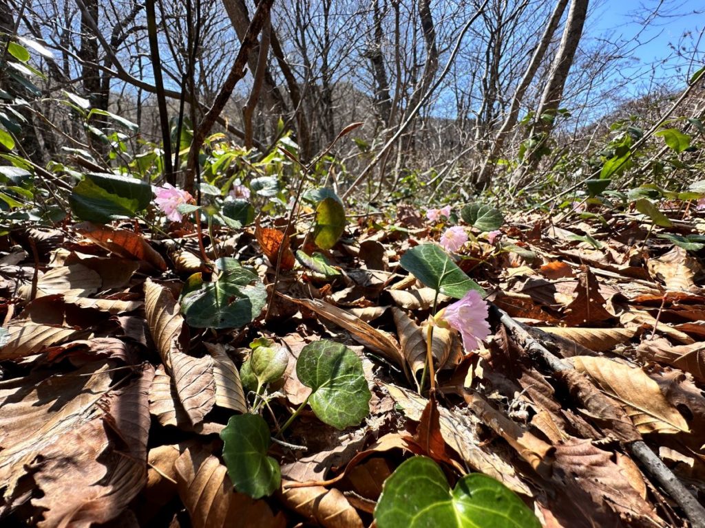 休日の今日は、少しだけ足を延ばして、真湯温泉と健康の森へ。真湯温泉では、駐車場から遊歩道を散歩していたらイワウチワが沢山咲いていました。