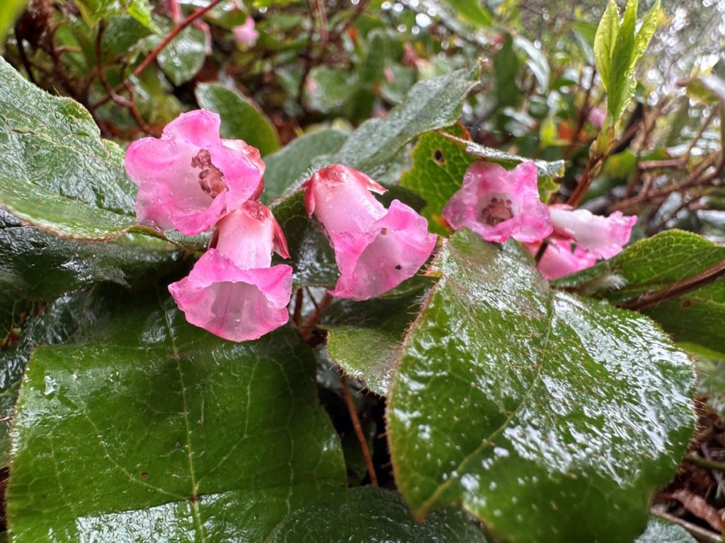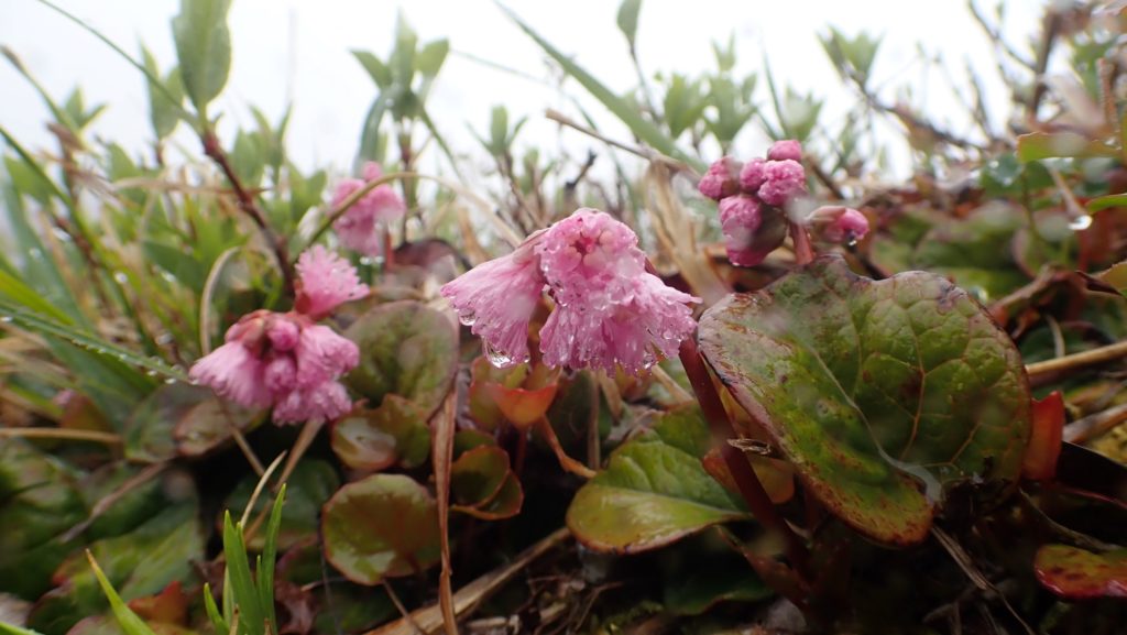 名残ヶ原方面は、ヤマザクラが美しかった。あと、温泉というか蒸気の吹き出ているところは地温も高いのか、イワカガミが咲いていた。