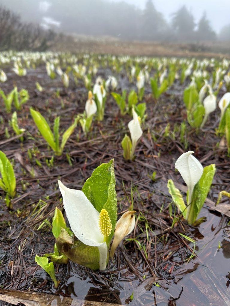イワナシなどもあったが、とりあえず湿原に広がるミズバショウを見て満足。