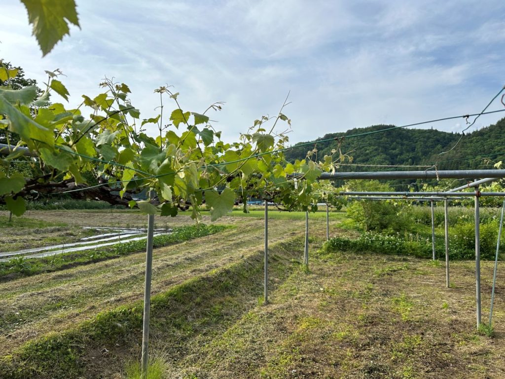 ブドウの新梢がどんどん伸びていく。しかし風で折れてしまうのもあるし、あっちこっちに伸びられても困るし・・・とにかく、わからないなりに、棚に広がるように誘引していく。 今日も2時間ぐらい作業しただろうか・・・