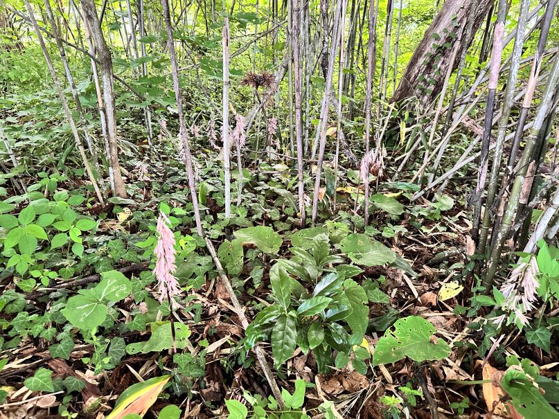 秋田で一株だけ見かけたことがあるサイハイラン。この前、近所の道ばたで見かけたので、もしかすると家にもあるのかもと思い、裏庭をうろついてみたら、ありました。群生地!でした。(雨が降ってきたので、写真は適当ですが)