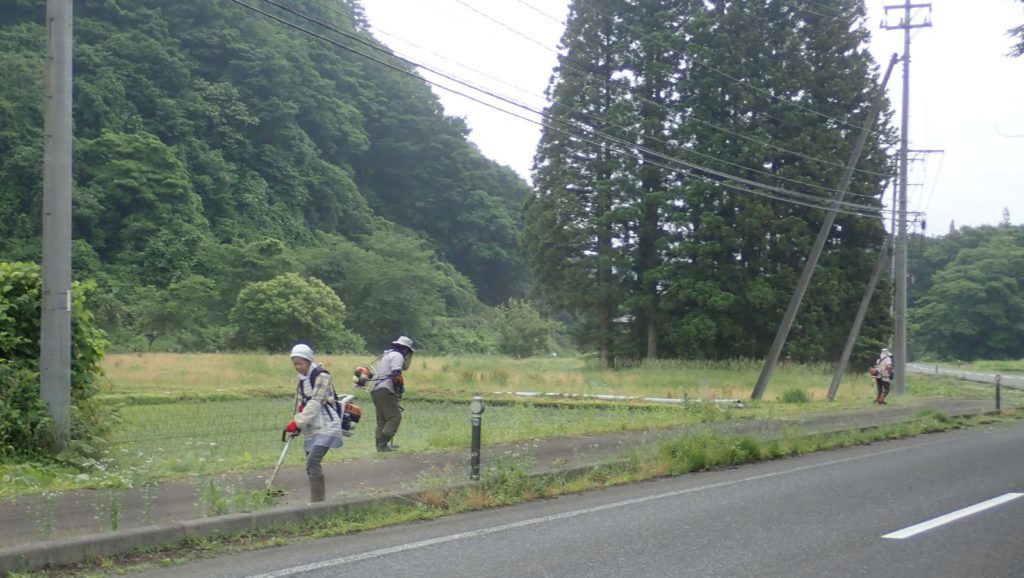 6月16日日曜日は、国道沿いの草刈り。朝5時半から7時半頃まで。皆さん、ちょっとお疲れかな・・・