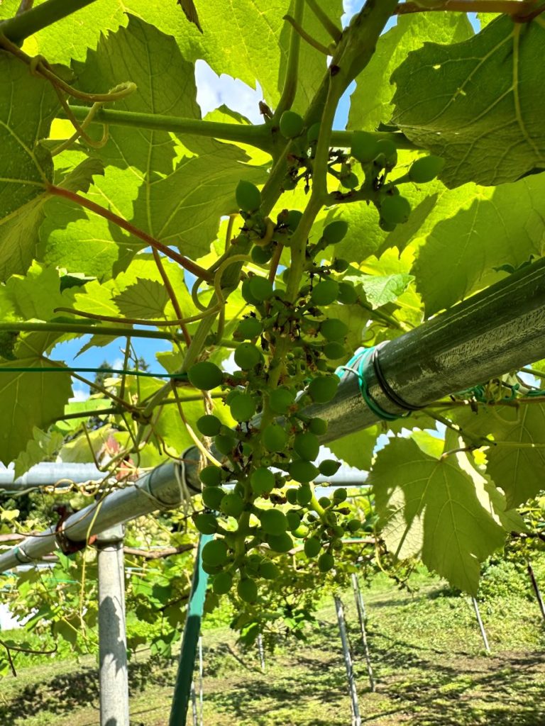 ブドウの実が膨らんでくる一方で、果たしてどの程度の数の房にしておくべきだったのか?残すべきなのか?悩ましい。 更には摘粒ってのするべきなのか?どうなのか? 花ぶるいのせいなのか?粒はどうも密集していると言うより、疎。巨峰とかで30粒、デラウェアで100粒とかネットには書いてあるけど、そもそも50粒ぐらいしか付いていない感じ・・・ということで、よくわからないまま、ここ数日は、とりあえず肥大しそうにない房、形の悪いまばらな房を落としているのであった・・・