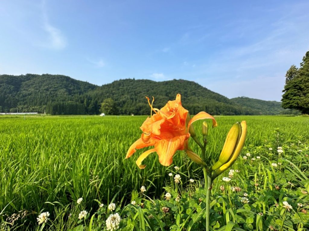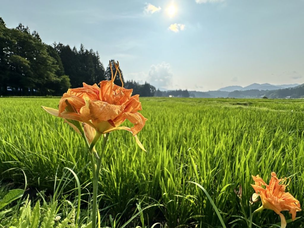 田んぼの畦に生えているのはヤブカンゾウかな。夏っぽいな。