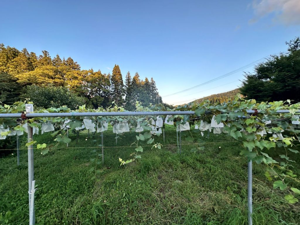 いつの間にかブドウが色づいてきた。とりあえず、この木は緑系品種ではないようだ。(キャンベル・レッドみたいな言い方もしていたけど、ネットで調べる限りそういう品種名は出てこないし、キャンベルアーリーの色とは異なるし・・・いろいろ回りの人にも聞いてみたところ、”North Red”じゃないのだろうか。と言う説に納得)