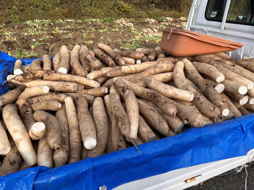 天気快晴の一日、東成瀬村の方へ回って、あちこち顔を出したり、農作業のお手伝い。大根をがっつり抜き、洗って帰ってきました。