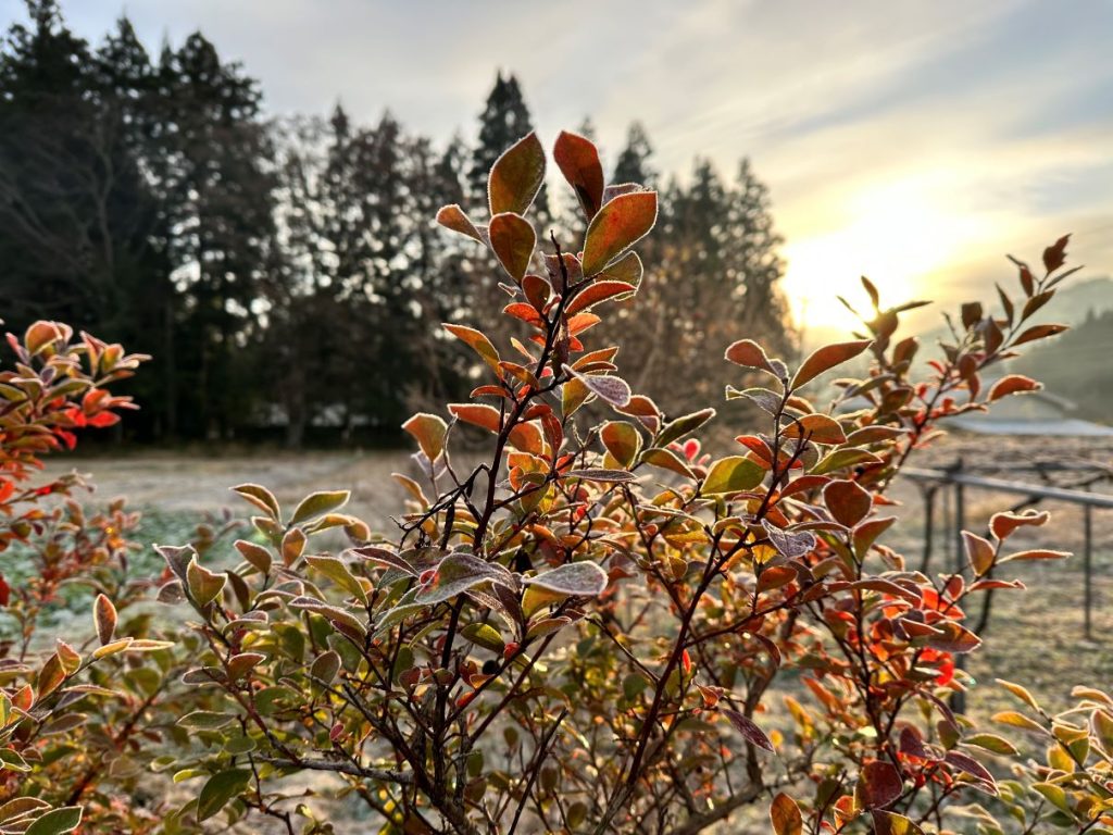 今朝は天気が良かったが、しっかり冷え込んで霜の降りた朝。栗駒山もきれいに見えているので、一応、朝7時からドローンで撮影。寒い朝に一時間近く立ちっぱなしで、すっかり身体が冷え込んで・・・部屋に入ったら、部屋の中は3度だった・・・