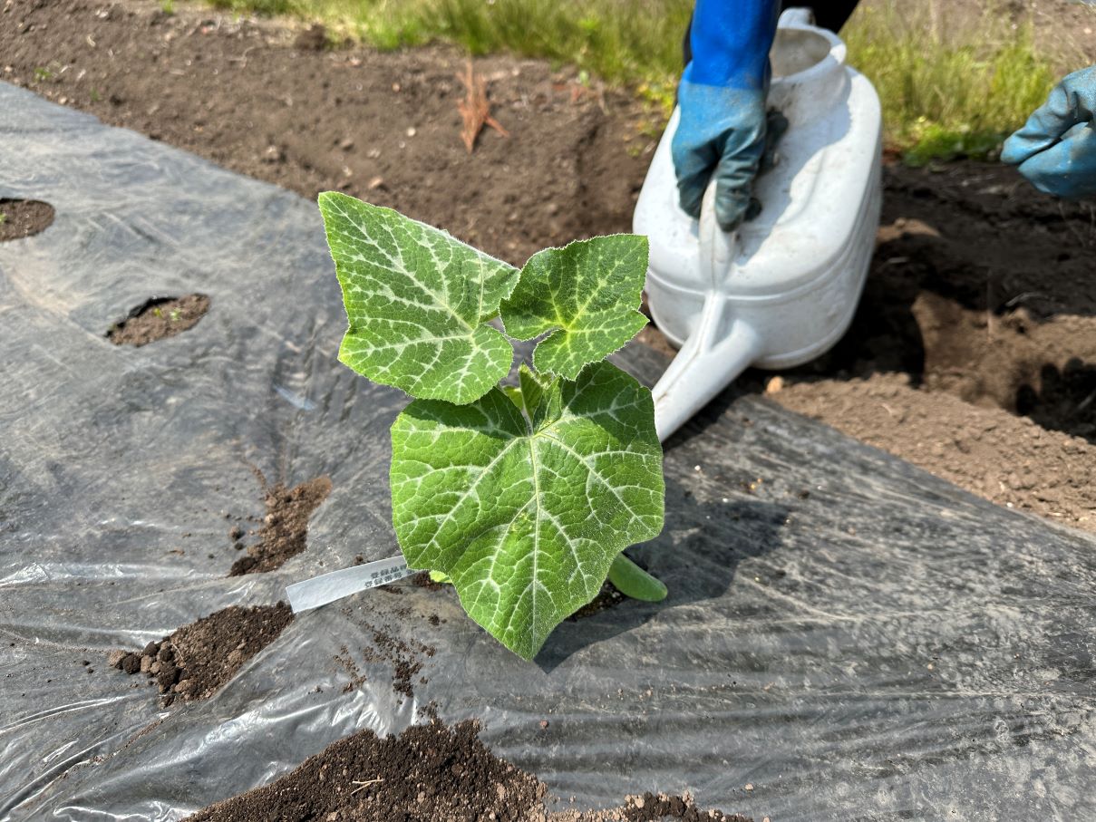 5月24日、交流館に届いていたこの地区の特産品「南部一郎カボチャ」の苗の引き渡…
