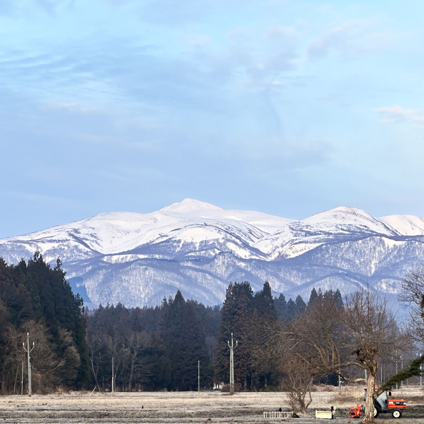 昨日の寒風からうってかわり、穏やかな朝。雲のない栗駒山を眺めるのはいつになるだろ…