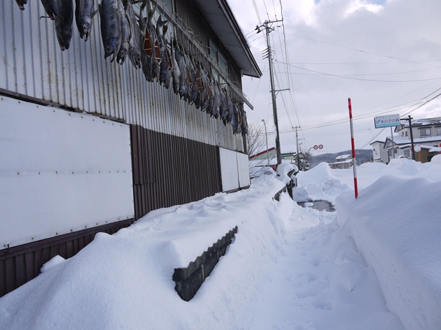 山形県鮭川村の冬の風物詩、鮭の寒干し。鮭川を遡上する鮭は、ウライで捕獲され、塩漬けにされたあと、寒風の中で干され、新切りが出来上がります。今、鮭川村のあちこちで鮭の寒干しの姿が見られます。