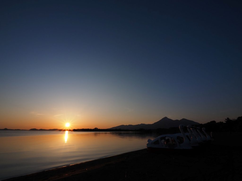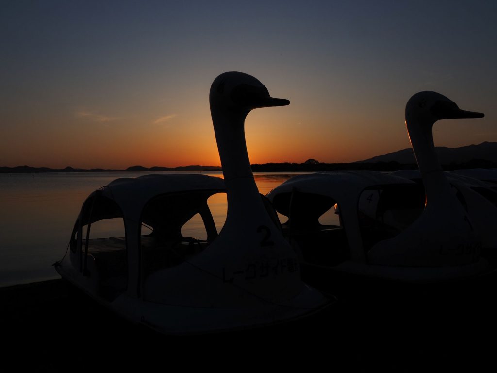 磐梯山と夕日の位置はだいぶずれているのだけど、きれいな夕暮れだった。