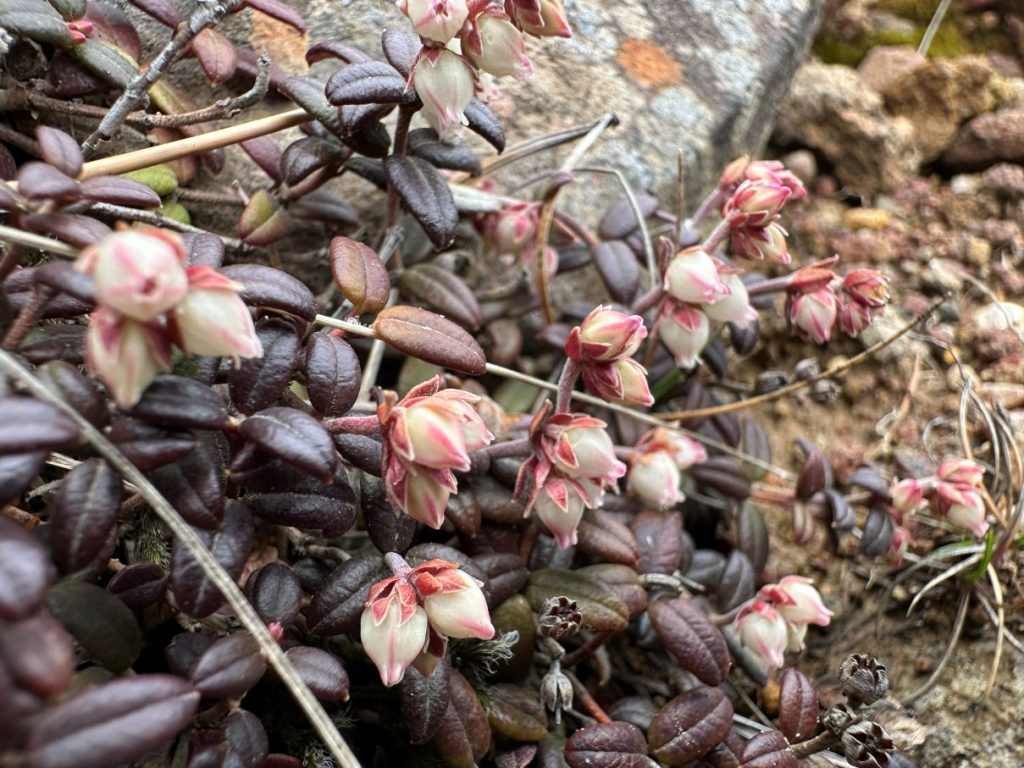 今日は、安達太良山の山開き。風が吹きまく頂上近くで咲いていたの(と言っていいのかな?ぎりぎりつぼみ?)はコメバツガザクラのよう。
