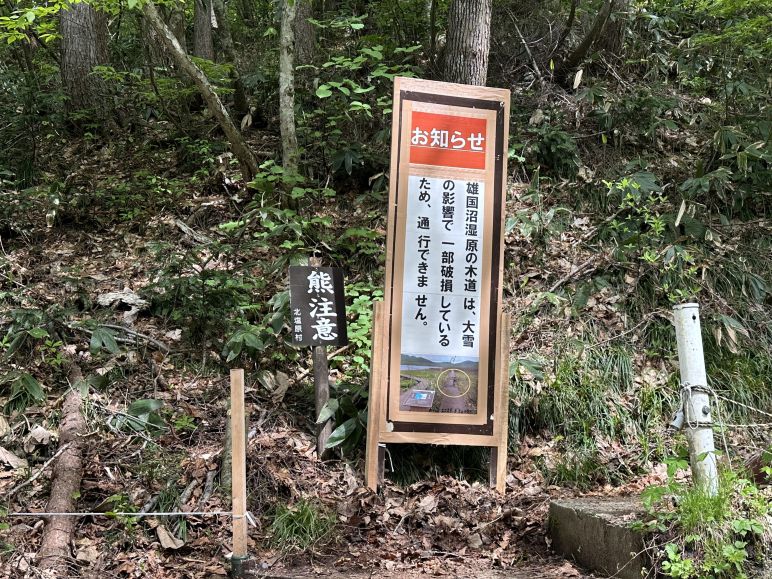追記:雄国沼木道の一部通行止めは続いていますが、散策はできます。(202507)