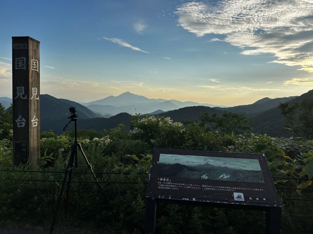 国見台からの夕景 井上靖がここからの夕景を「壮大な幻想交響詩のフィナーレを奏でるようだ」と評したのは、何月のことだったのだろうか。とりあえず2025年7月26日の夕景。