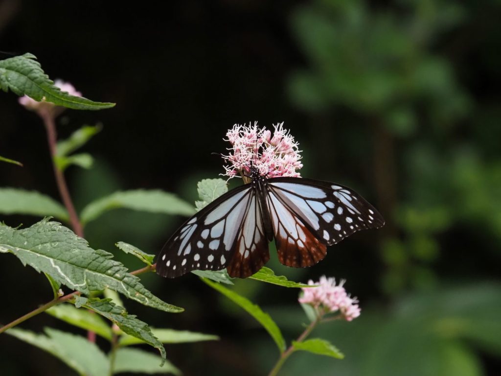 安達太良山登山道をくろがね小屋(改修中)に行く途中、アサギマダラが穏やかに花を訪ねて穏やかに飛んでいた。